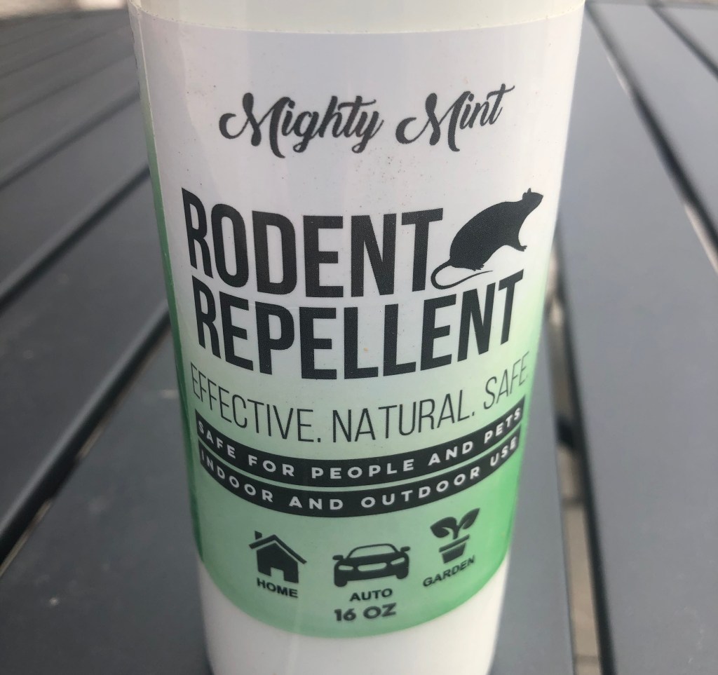 Next up, peppermint spray. It was wet, so it stuck to the outside of the can and inside of the can. But make sure you are not standing downwind when you spray. Because I was and I ended up smelling like a cross between an old hippie and pack of doublemint gum. Unfortunately, this didn’t work either. The squirrels still got into the bags.