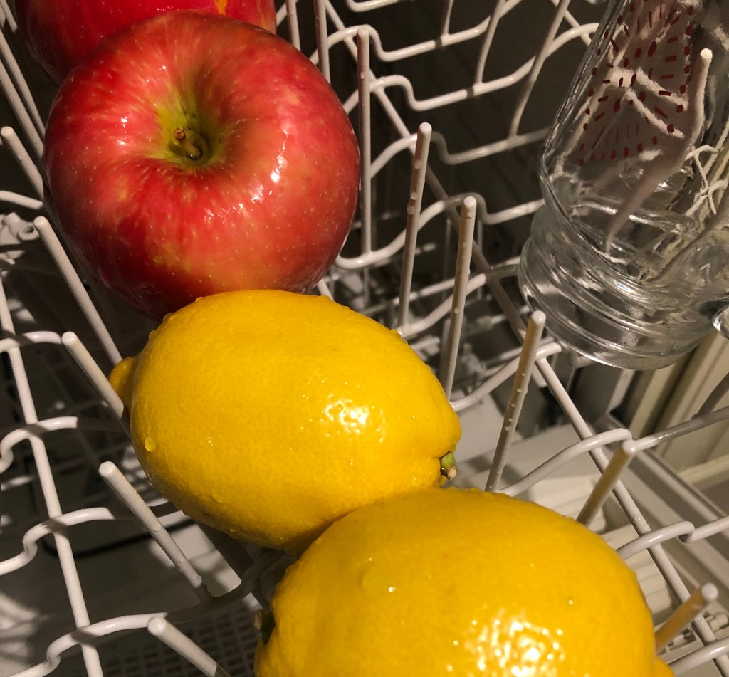 Lemons in the dishwasher… You’ll always find lemons in the house. Sometimes they’ll be in the dishwasher. For the most part, we wash our dishes by hand and let them dry in the dishwasher. So when I buy lemons and wash them, why not let them dry in the dishwasher along with the dishes. You may find some carrots and celery in there too.